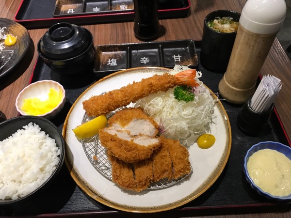 席について確認したので、オーダーする時には間違いに気付いていた。そして、プロモの品は受け取らなくていいやと思って注文したのが、ヒレカツセットとまめとんセット。