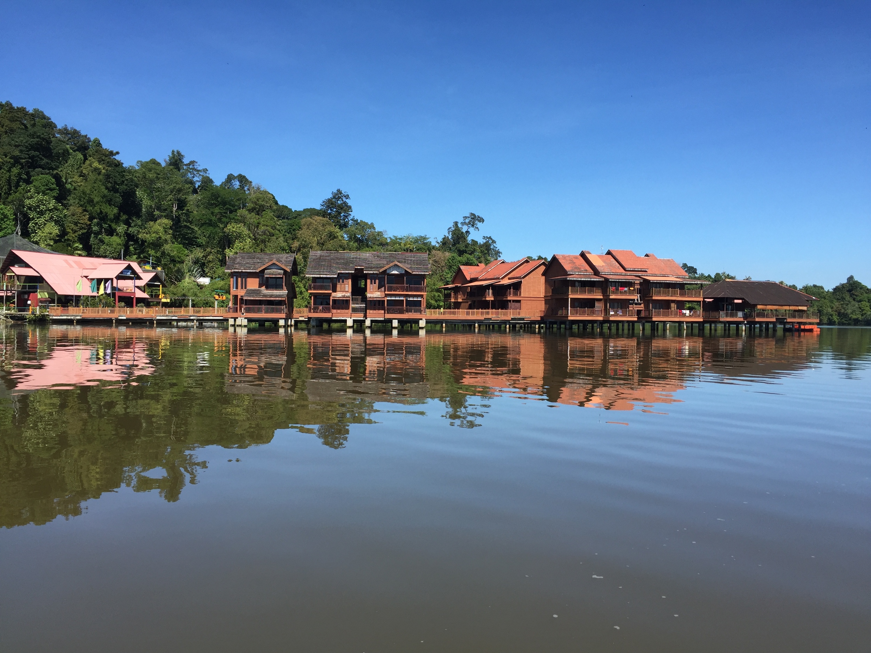オランウータンの保護施設がある、ブキメラレイクタウンリゾートを訪れた。ここはペナン島ではなく、イポー寄りの半島側にあって、ペナンの中心街から50分くらい。タウン内にある船乗り場からはボートで向かう。乗車時間は5,6分。