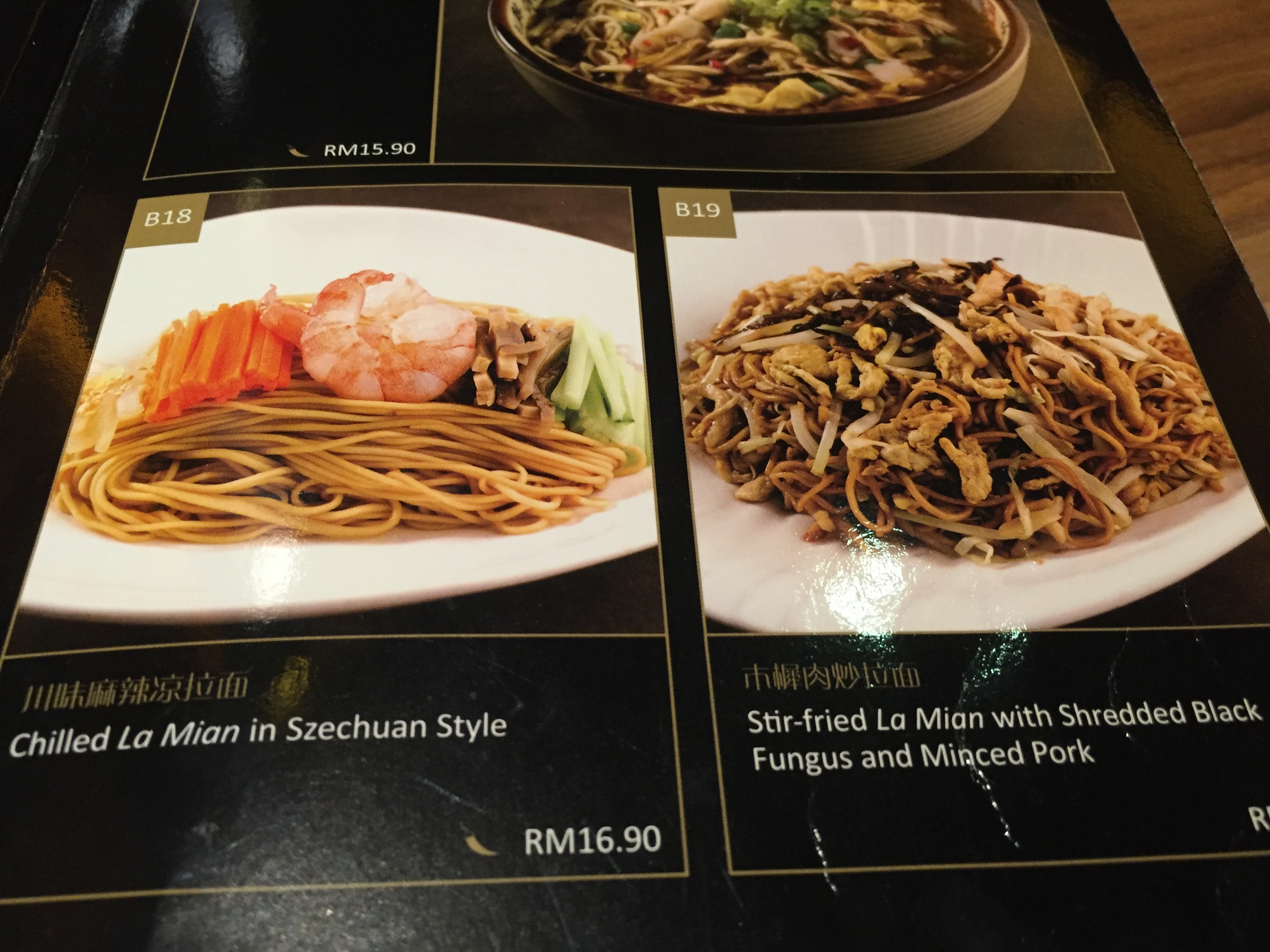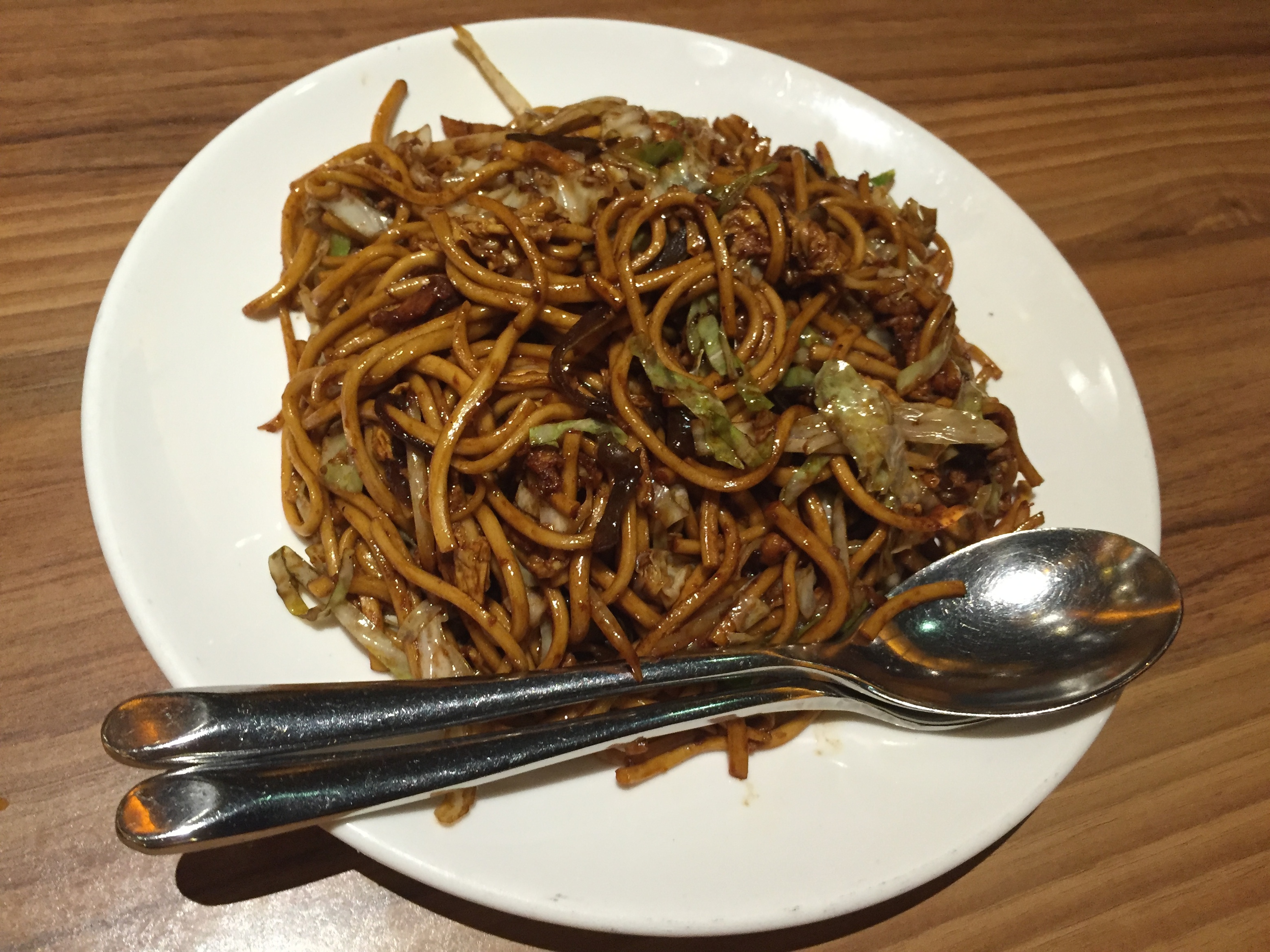 場所は、パラダイムモールにある「楽天皇朝(Paradise Dynasty)」。そこのStir-fried La Mian with Shredded Black Fungs and Minced Porkというメニュー(16.9RM、税・サービス料抜き)。キャベツや豚挽肉にキクラゲと具材が豊富で、ソース味のような味付けで飽きない。絶品だ。