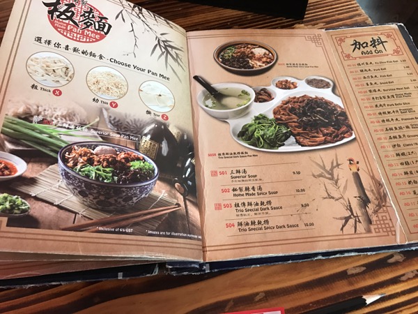 そんな中、焼きそば好きとしては、やはりドライパンミーを食べずにはいられなかった。Trio Special Dark Sauce Pan Mee(9.5RM、サービス料別)で、ポークベリー(6RM、同)をトッピングした。ドライパンミーの醍醐味は、イカンビリスなどの具を混ぜて食べること。こういう平皿では混ざらないので、その点は考え直した方がいい。