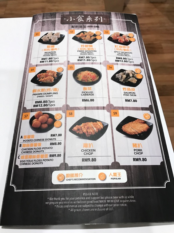 麺がとにかく、もちもちしている。まるでラ王の麺のよう。それと、天かすのようなものとラー油がマッチして、すごくおいしい。やはり台湾の味は、しっくりくるなあ。料金は13.8RMで、GST込み。モールの中の店としては、安い。