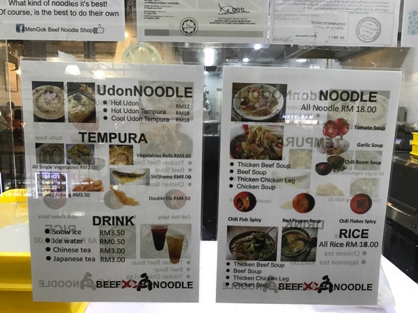近くのスバンパレードに牛肉麺の店ができたのを発見し、早速行ってみた。その名も、Beef Noodle「メン角」。1Fにある映画館のMBOの隣の店。