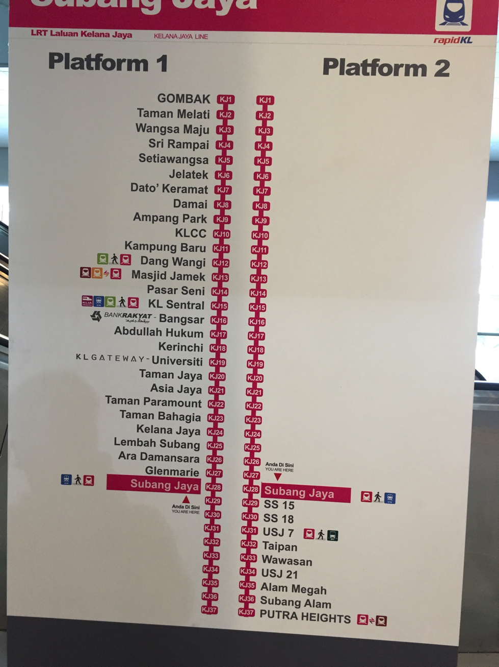 料金は、スバンジャヤ〜アラダマンサラ間が1.8リンギ、スバンジャヤ〜タイパン(USJ)間が2.2リンギだった。