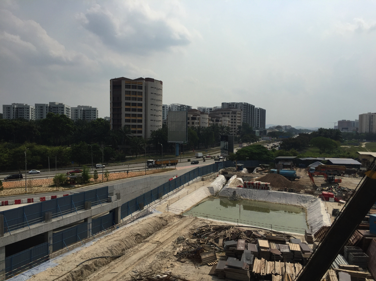 アラダマンサラ交差点方向から駅まで車で来た場合、帰りは相当遠くまでUターン車線がないため、車は苦労するなと思っていたが、その辺を考慮して、車でスバンジャヤ方面に向かう時は、写真のように、右に曲がると15号線へ、左に曲がるとアラダマンサラの駅の裏(Evolve正面側)に出ることができるようになった。これは、この辺の道路事情を考えると、かなりの進歩だ。