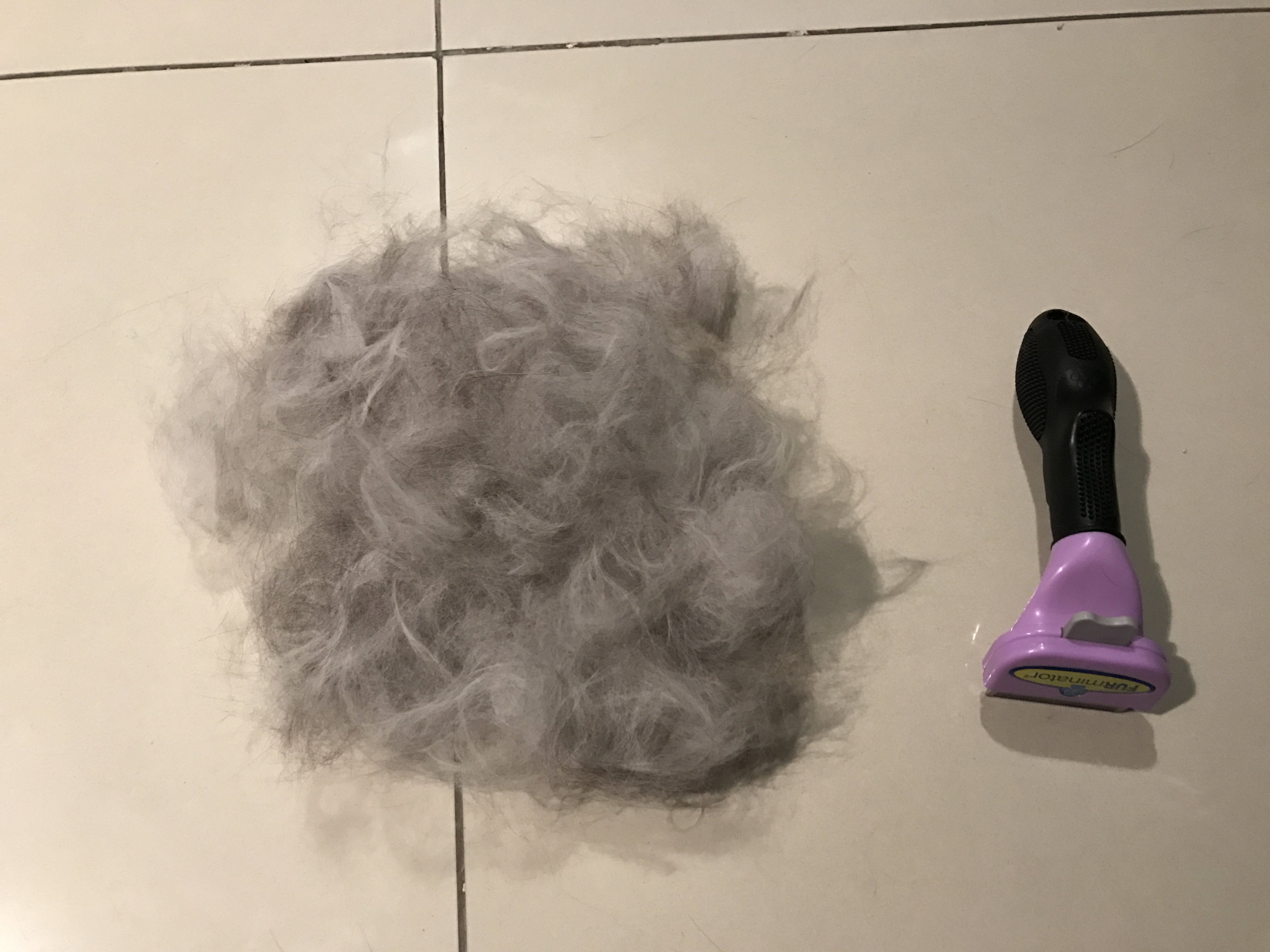 抜け毛が、面白いように取れる。毎日、グルーミングしているが、ご覧のように大量だ。まだ取れるが、嫌がるので止めてこの程度だ。