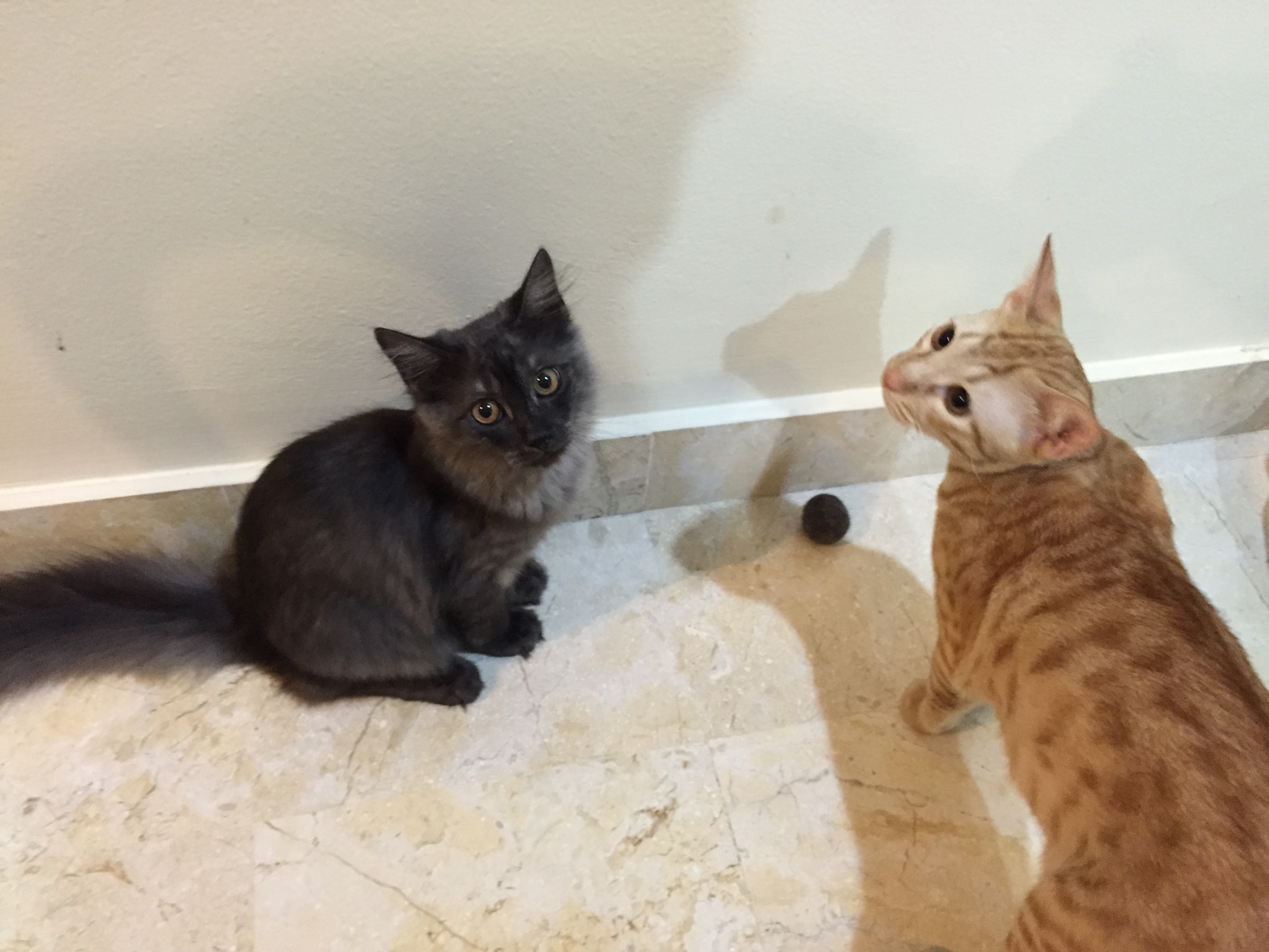 毛玉ボールとは、猫をブラッシングした時に出るムダ毛を拾い集め、それを団子状に丸めた物だ。これを転がして、子猫はずっと一人で遊んでいる。自分や兄弟猫の匂いがするからだろうか、彼らはどんなおもちゃよりも毛玉ボールが大好きだ。