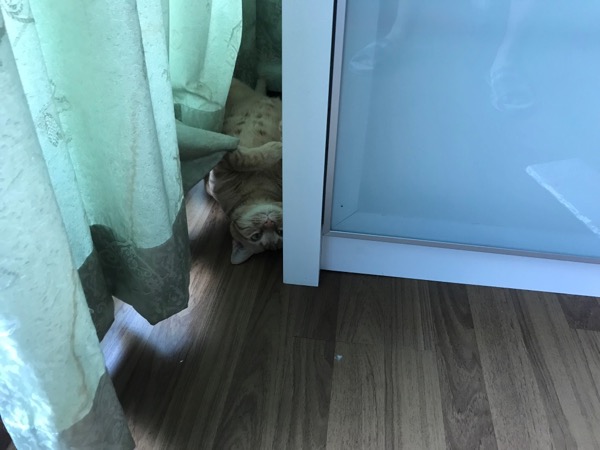 タイガは、クローゼット脇のカーテンの陰が好き。
