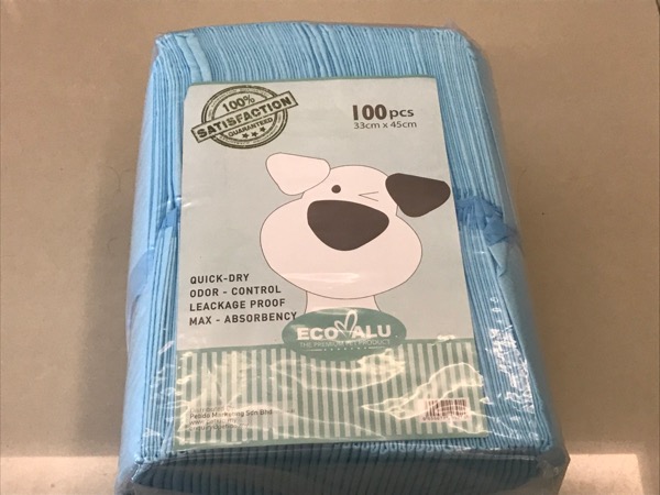 今はペットショップで、こうした100枚入りのサービスパックをよく見かけるようになったので、愛犬家はさぞかし助かっているのではないでしょうか。我が家も助かってます。なにせ、ダイソーが近くに無くなり、そこで売っていた10枚入り(RM5.9)を買えなくて困ってたんです。