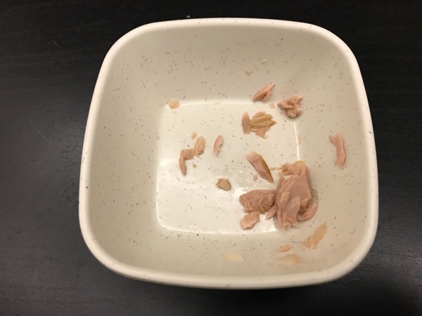 猫が食べた後の皿を見ていると、面白い。これはピューマが食べた後の皿。かなり食べ残しているけれど、彼はちゃんと食べたつもりだ。