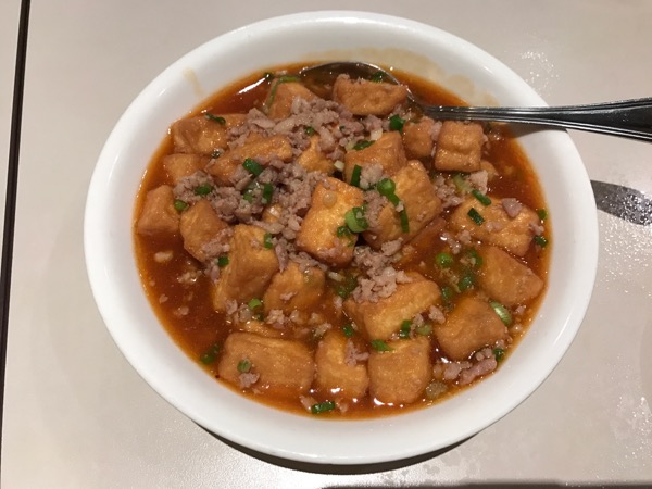県泰豊の新メニュー、「Spicy Egg Tofu with Minced Pork」。小ぶりな厚揚げ豆腐に、ひき肉とマーボーのソース、さらにソルテッドエッグが加わっているので、まずいはずがない。これはうまい。