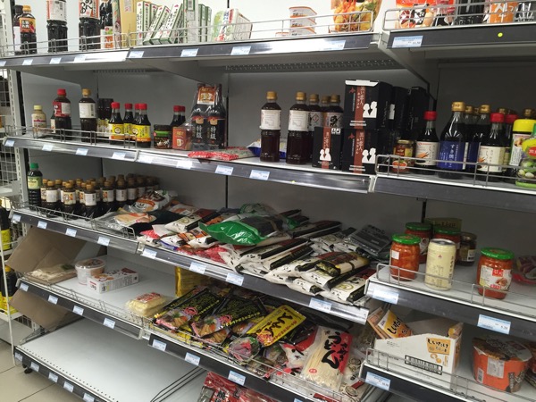 在庫整理の途中なのかもしれないが、この状態を見て愕然とした。イオンであっても、日本食材は売れなくて、売り場縮少の憂き目に遭ってしまっているのか、と。