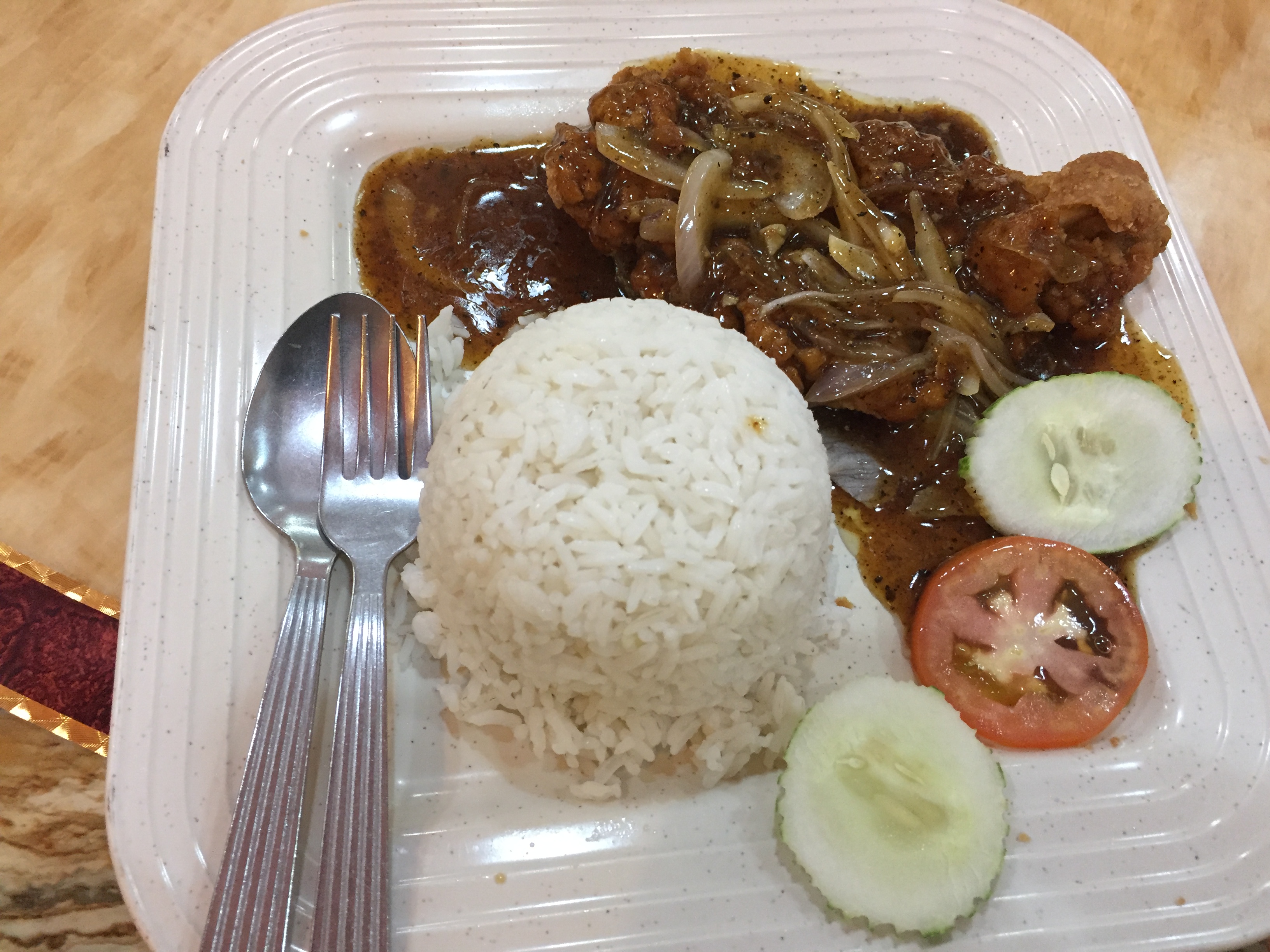 まあ、味が濃くて美味しいから、これでご飯が美味しかったら食べ過ぎてしまうので、この程度でちょうどいいんだけどね。写真はBlack Pepper Chicken Chop Rice (6RM、イポーの家香飯店)。