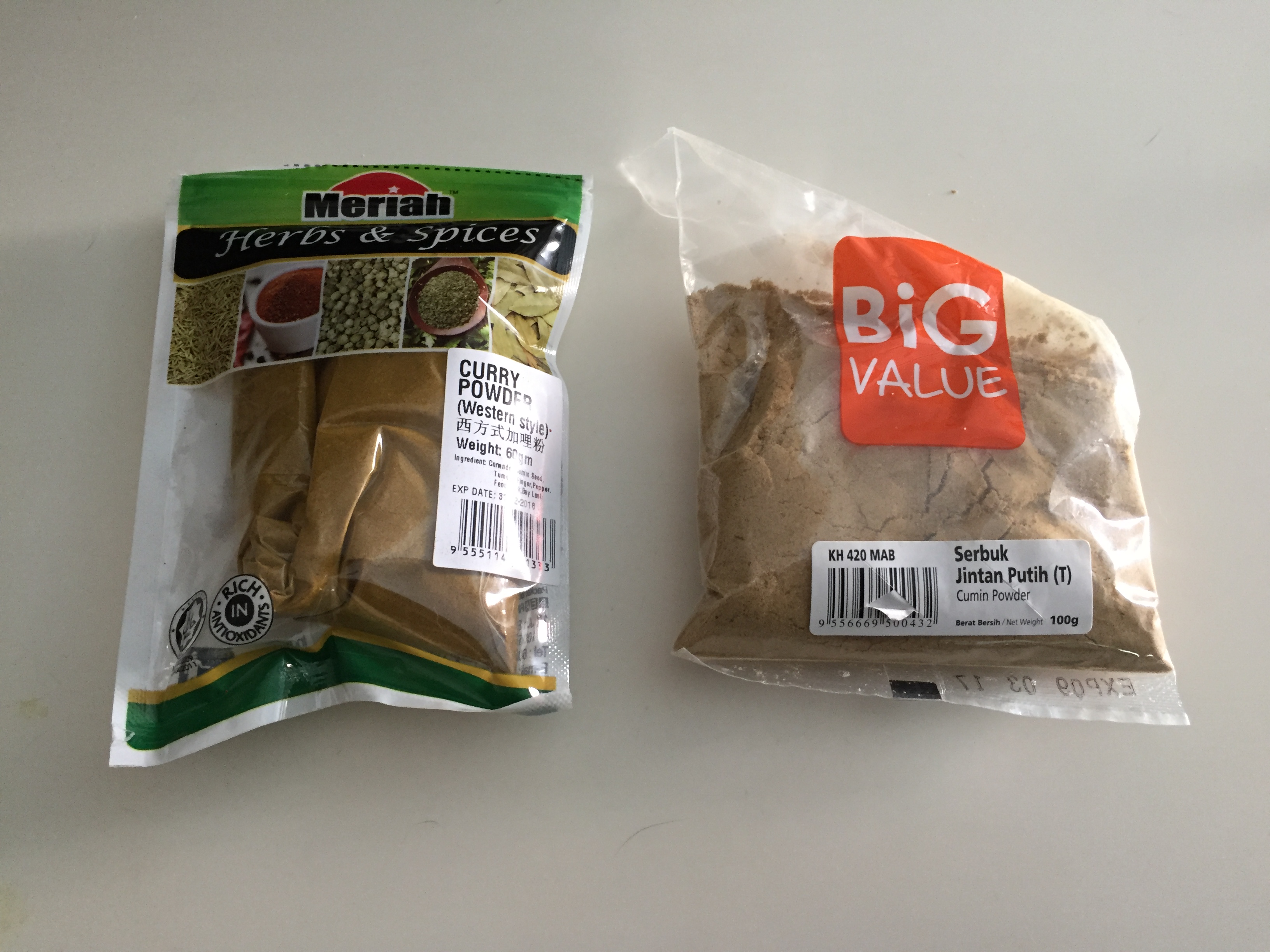 それならということで、自分好みのカレー作りがスタート。スーパーに行けば、色々なパウダーが売っている。カレーは基本、クミンやターメリック、ガラムマサラなどの香辛料(スパイス)をミックスしてカレールーを作るらしい。そういう香辛料をグラインドしたものと、それらを合わせたミックスパウダーも売っている。どちらかというと、ミックスパウダーの方が種類が多く、聞くとローカルのインド人も香辛料から作ることはせず、ミックスパウダーを使うのが普通らしい。