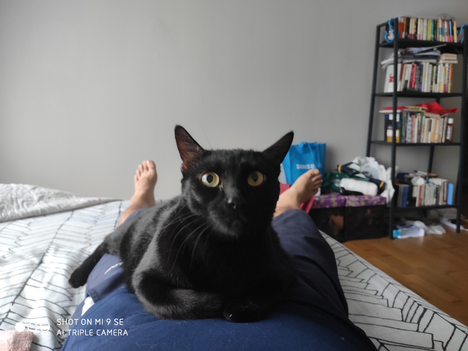 急にミミちゃんの甘え方が激しくなってきた。ベッドに寝転がってスマホを見ていると、ミミちゃんがお腹の上に自分から乗ってくる。こんなことは初めてだ。ビックリ。