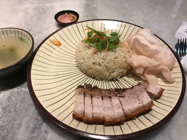 人気の秘訣は、おいしい割りには料金が安めだからだろう。今回頼んだのは、Crispy Roasted Pork Belly Rice。これで、10.5RM(GST別)だから、他のレストランに比べれば断然安い。ホーカーズより若干高い価格帯だが、ホーカーズではそもそも、こんなのは食べられないと思う。