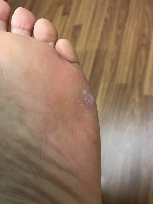 約2週間後、魚の目の芯は死んだみたい。まだ、硬い皮膚が若干残っているが、これなら歩いても痛くないし、全然快適。よかったー。